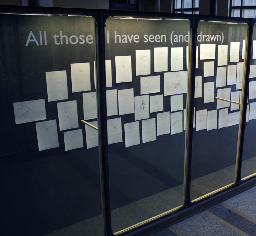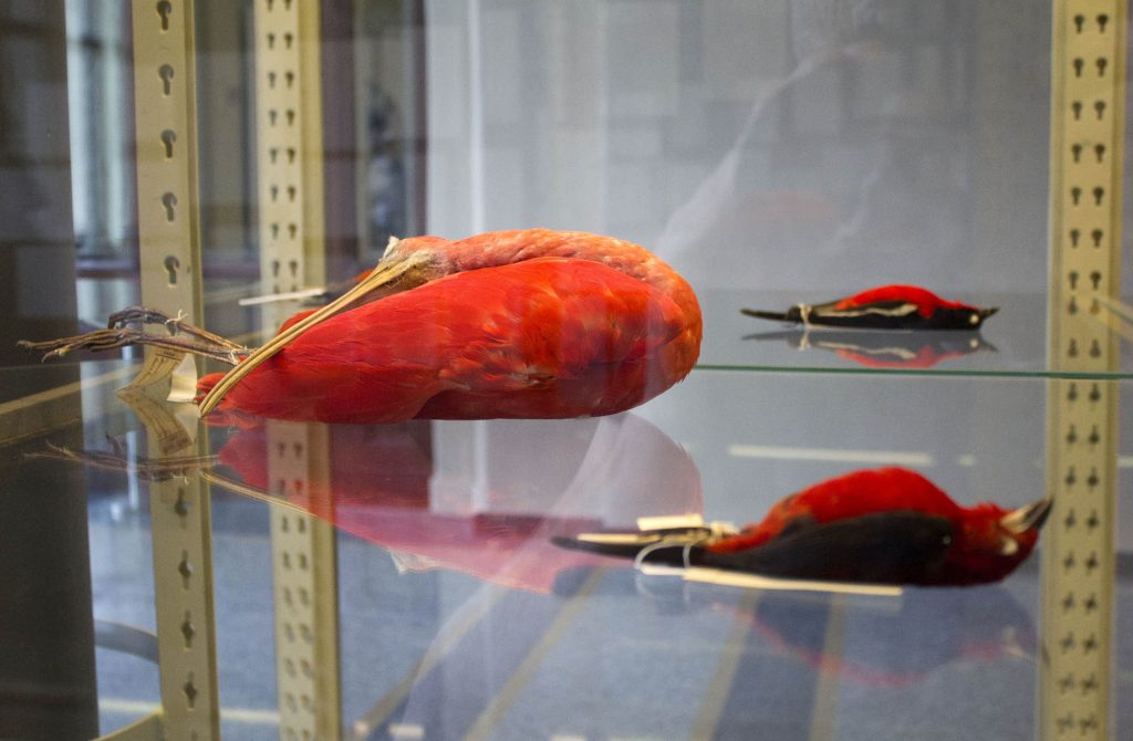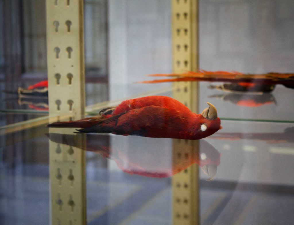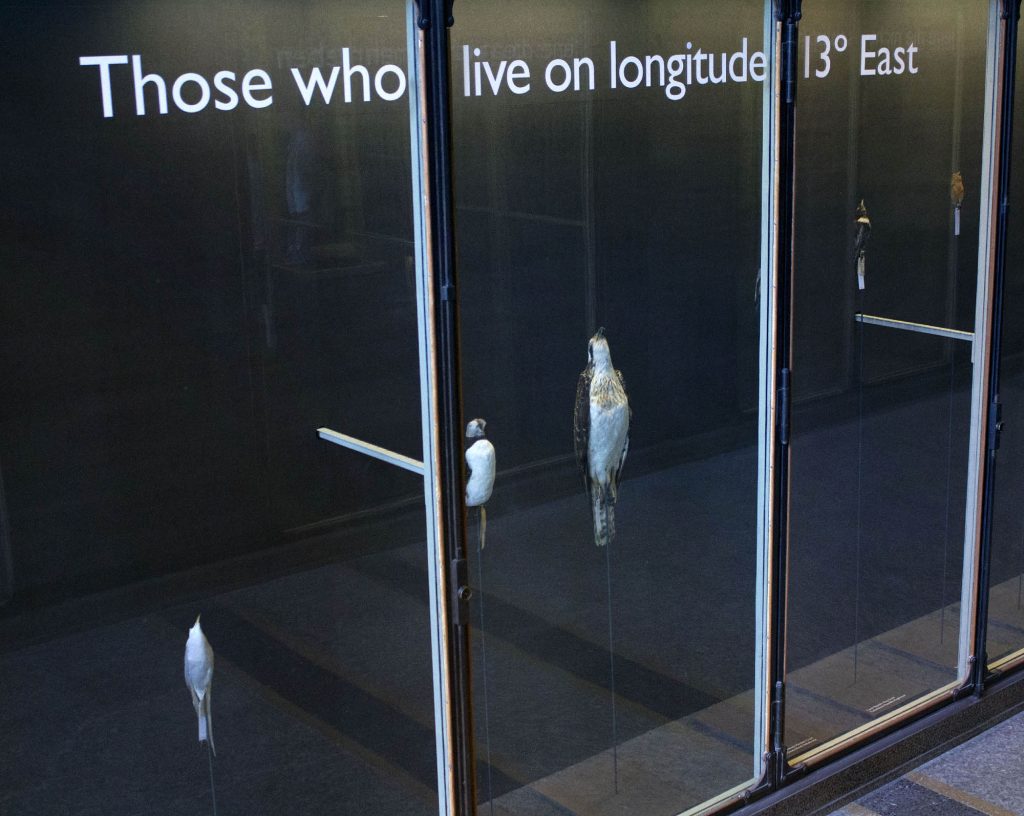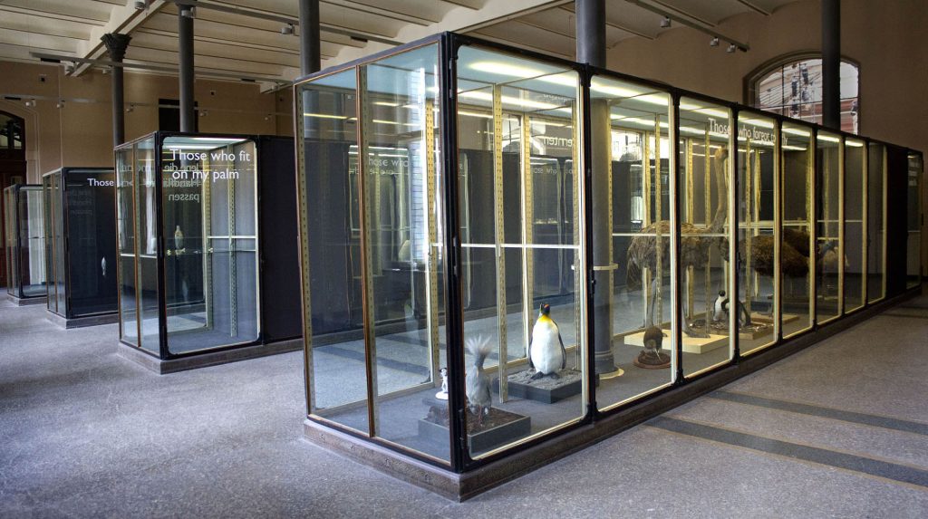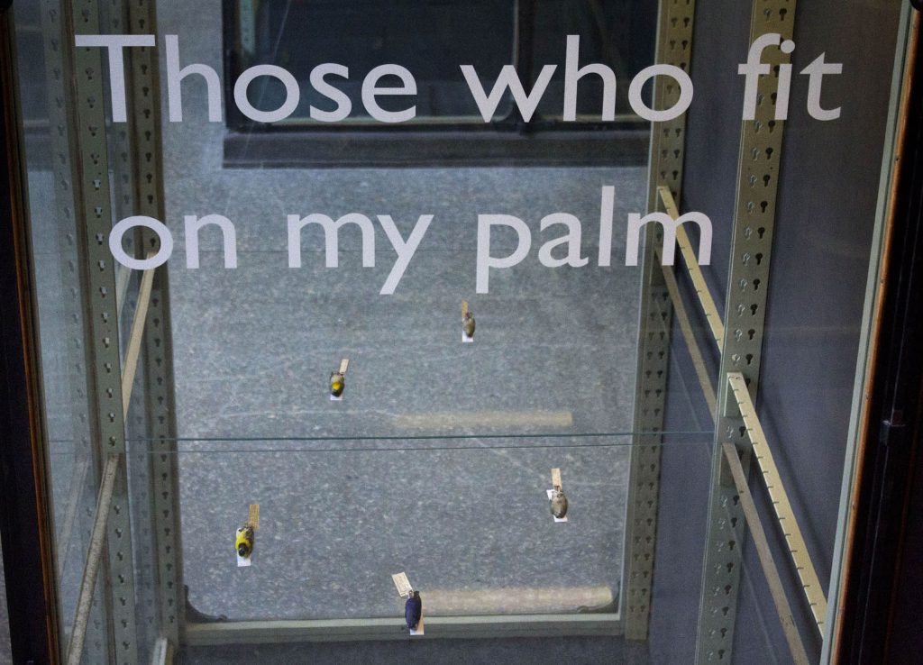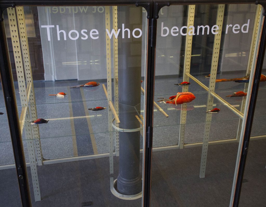 Commissioned by Wellcome and Naturkunde Museum, Berlin, ‘An Arbitrary Taxonomy of Birds’ used specimens from the Natural History Museum as the ‘material’ for a large installation enacted within the vitrines of the museum’s Bruckensaal. The installation re-presented selected taxidermy specimens from the museum’s collections to create new constellations of meaning – new arbitrary taxonomies that divided winged-life into highly subjective and personal categories. The bodies of the birds were organised into eleven groupings such as: ‘Those Who Fit On My Palm’ or: ‘Those Who Became Red’. The installation created an absurd taxonomic system that destabilised science’s established orders and sought to reflect upon how humans have come to organise and understand the animals that they share their planet with.